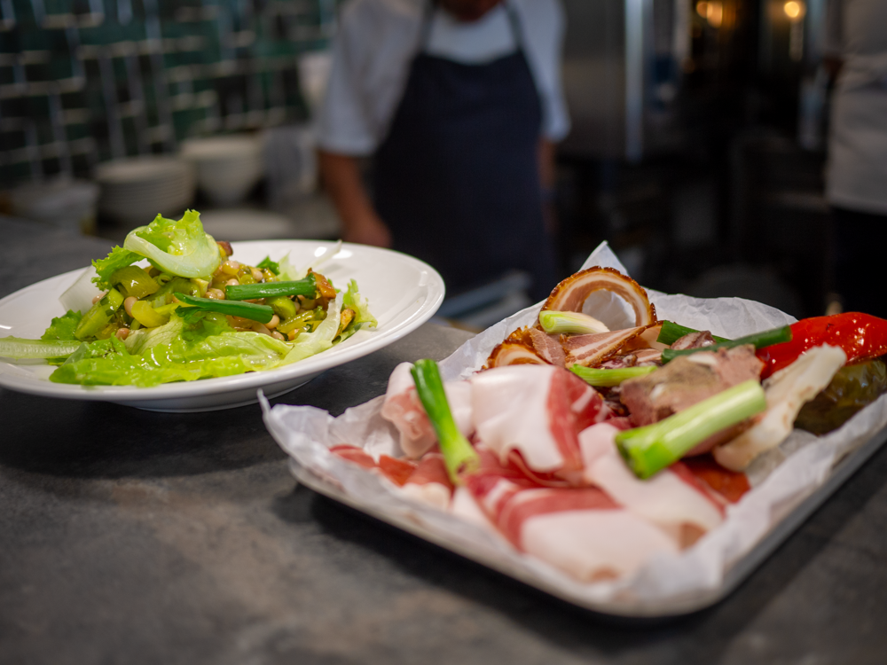 Kíváncsian kutatja a környék falusi termelőinek sajtjait, füstöltjeit, kézműves különlegességeit – és izgalmas érzékenységgel építi be ezeket a helyi ízeket világlátott konyhájába.